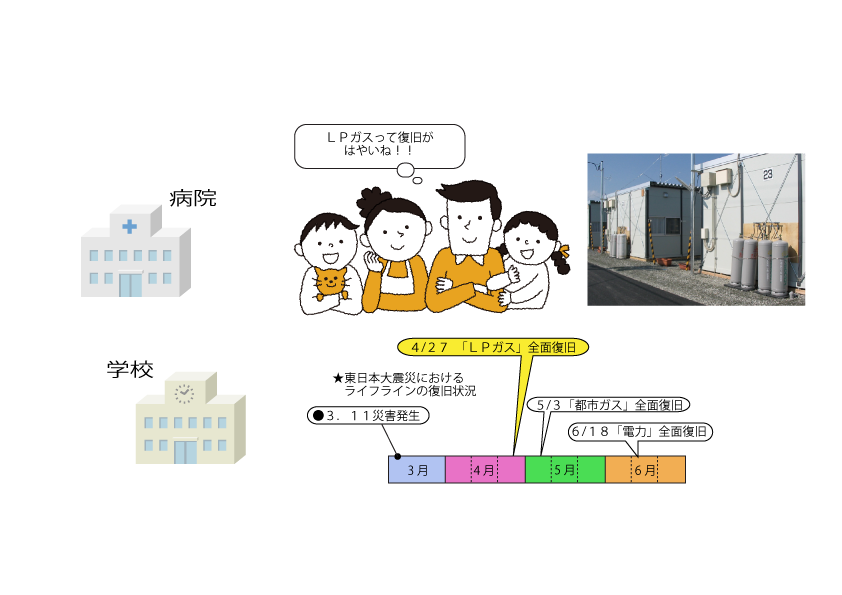そうした実績から様々なところで、LPガスは「災害に強い」ことが実証されています。