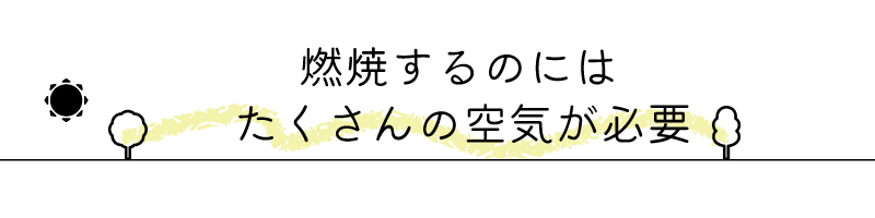 LPガスが燃焼するためには新鮮かつ、たくさんの空気(酸素)が必要です。室内でガスを使用するときは、十分に換気をしてください。排気が不十分な場合は、不完全燃焼を起こしCO(一酸化炭素)が発生しますので十分注意してください