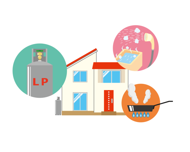 他にも、ブタンが主成分のもので主に工業用の燃料・都市ガス用の原料として使われているブタンガスや、ブタンガスにプロパンガスを混ぜたものでタクシーなどの自動車用燃料として使われているオートガスなど、一般的にはこれらのガスを総称してLPガスと呼んでいます