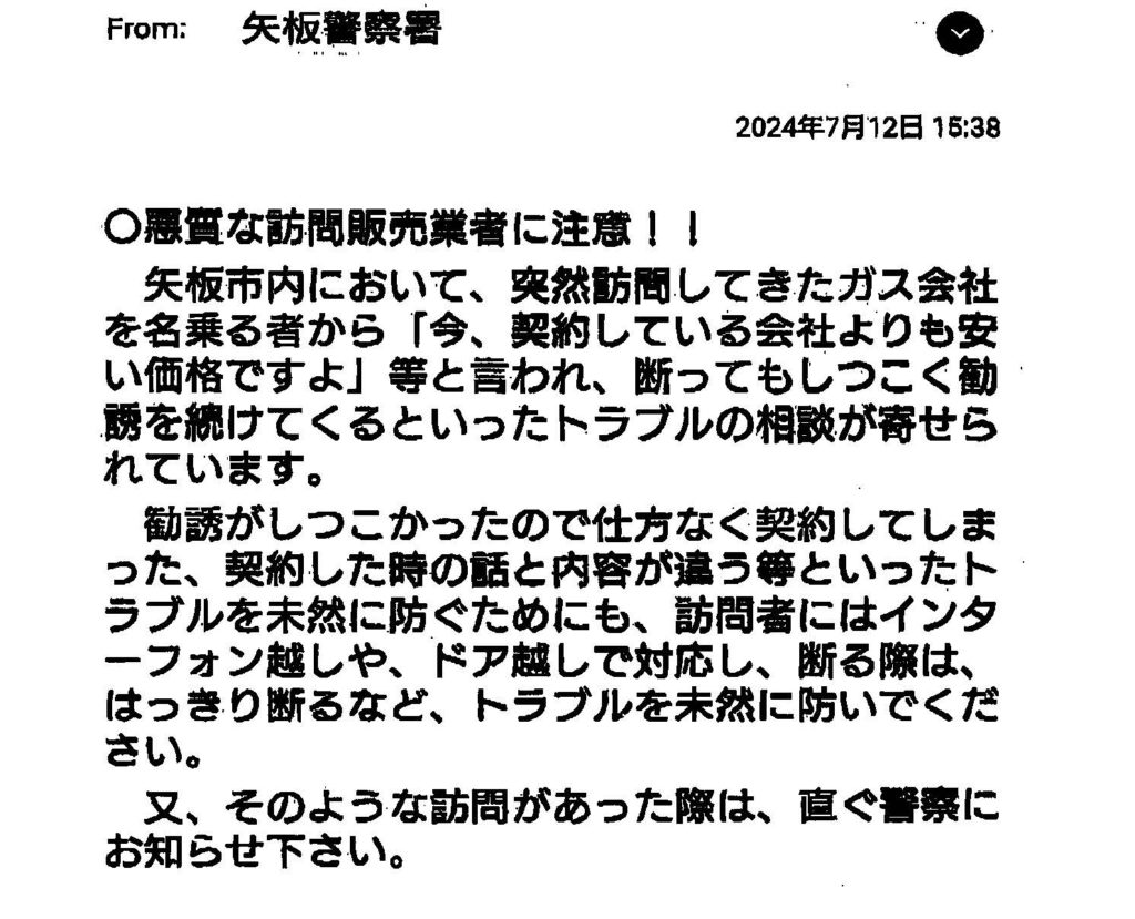 不審な訪問営業にイエローカード!!