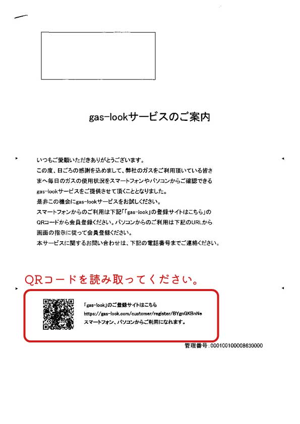 発行された「ガスるっくサービスのご案内」記載のQRコードから登録画面に