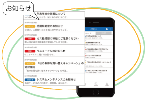 重要なお知らせなどの情報を