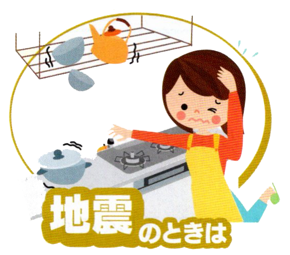 ◆地震で一番怖いのは、火災による二次被害です。揺れがおさまるのを待って、あわてず落ち着いて火の用心に心掛けてください。